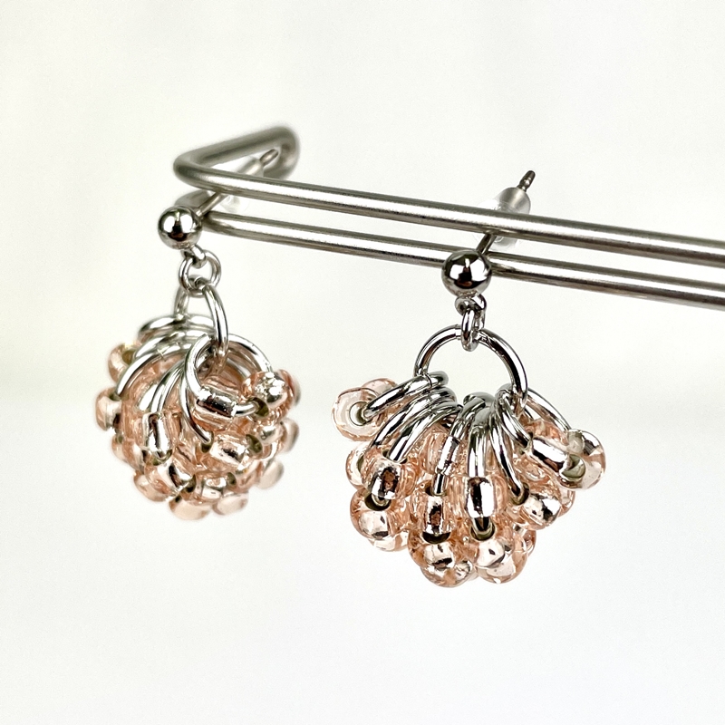 ブランド史上 かつてないコンパクトなサイズ感の” Berry “はごろっと大きなビーズが果実を思わせる新鮮なデザイン。リズム良く並ぶ煌びやかなリングパーツが小さなモチーフに高級感をもたらします。マスクの着脱もしやすい新たな魅力をもつピアス/イヤリングです。