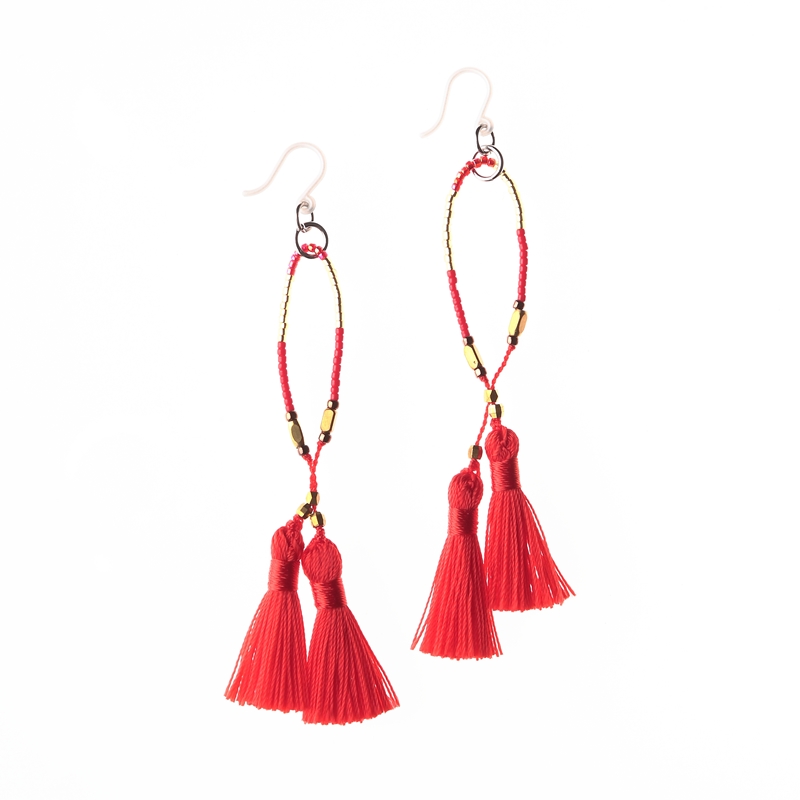 人気のタッセルシリーズにピアスが登場。全8色のタッセルカラーと長めにとられたモチーフが大人カジュアルな雰囲気で好バランス。
