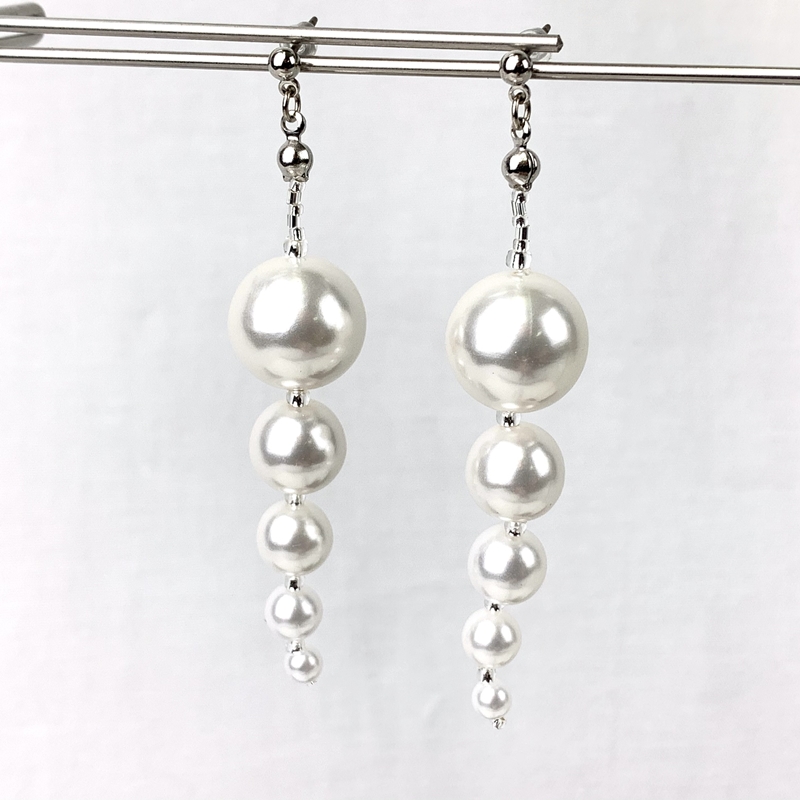 ピアス:全長64mm プラスチックパール:直径14mm、直径10mm、直径8mm、直径6mm、直径4mm